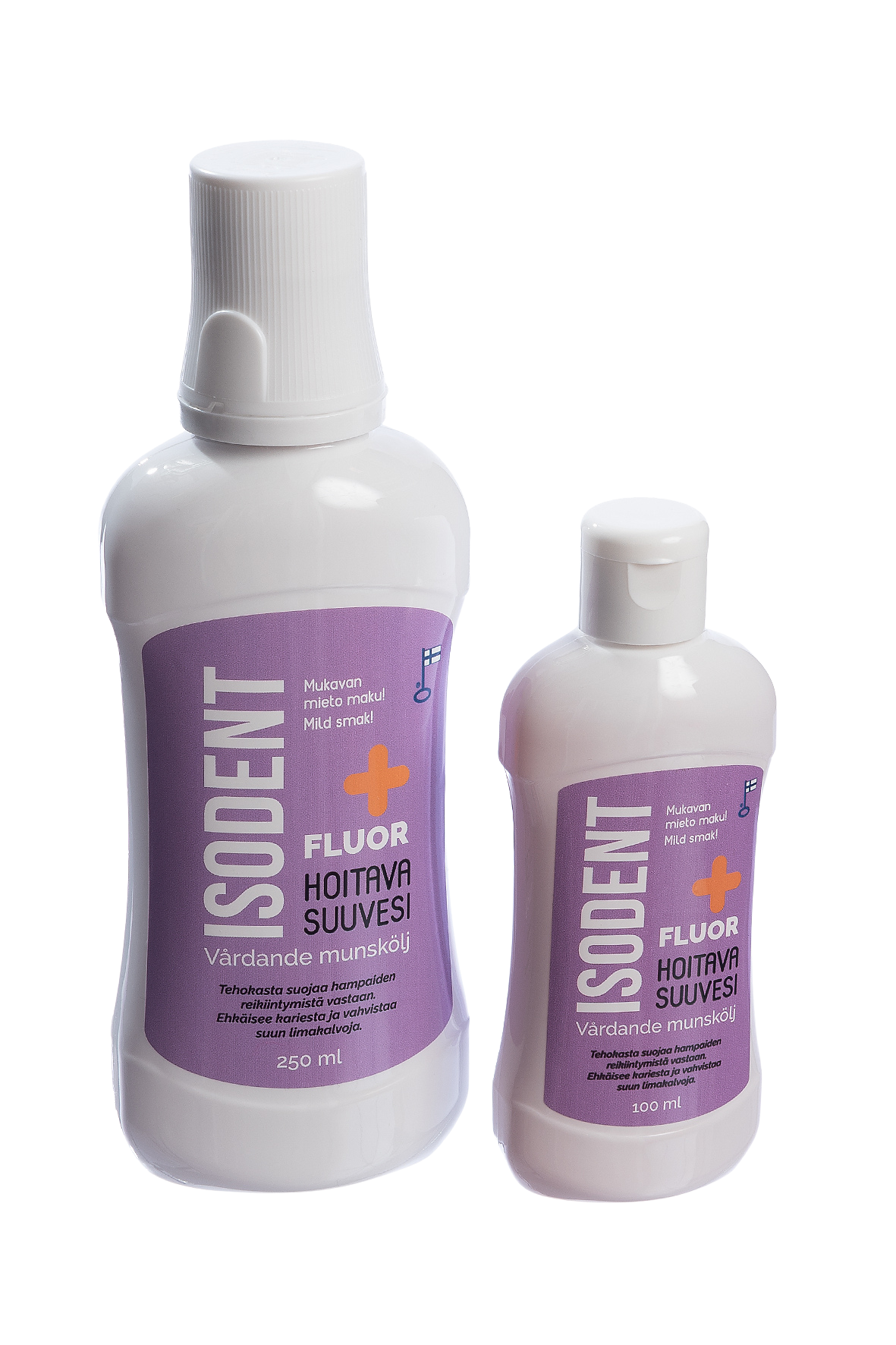 Fluor+ hoitavan suuveden korkea fluoripitoisuus (0,15 % natriumfluoridia) auttaa tehokkaasti suojaamaan hampaitasi reikiintymiseltä. Ksylitolin ja erytritolin ainutlaatuinen yhdistelmä antaa voimakasta lisäsuojaa kariesta vastaan. Tyrniuute vahvistaa suun limakalvoja ja edesauttaa suun haavautumien paranemista. Se myös auttaa pitämään suun limakalvot kosteina. Kamomillalla on limakalvoja rauhoittava vaikutus. Puolukka toimii luonnollisena säilöntäaineena.